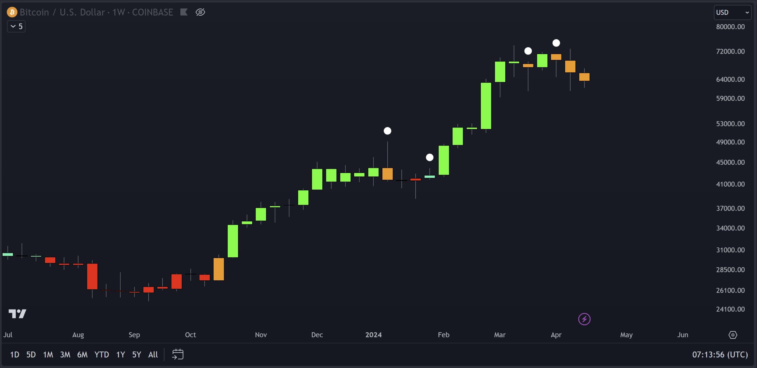 Bitcoin is up 1.36% in the past 24hrs at a current price of $63,910. So far this year Bitcoin is now up +51.12%.
