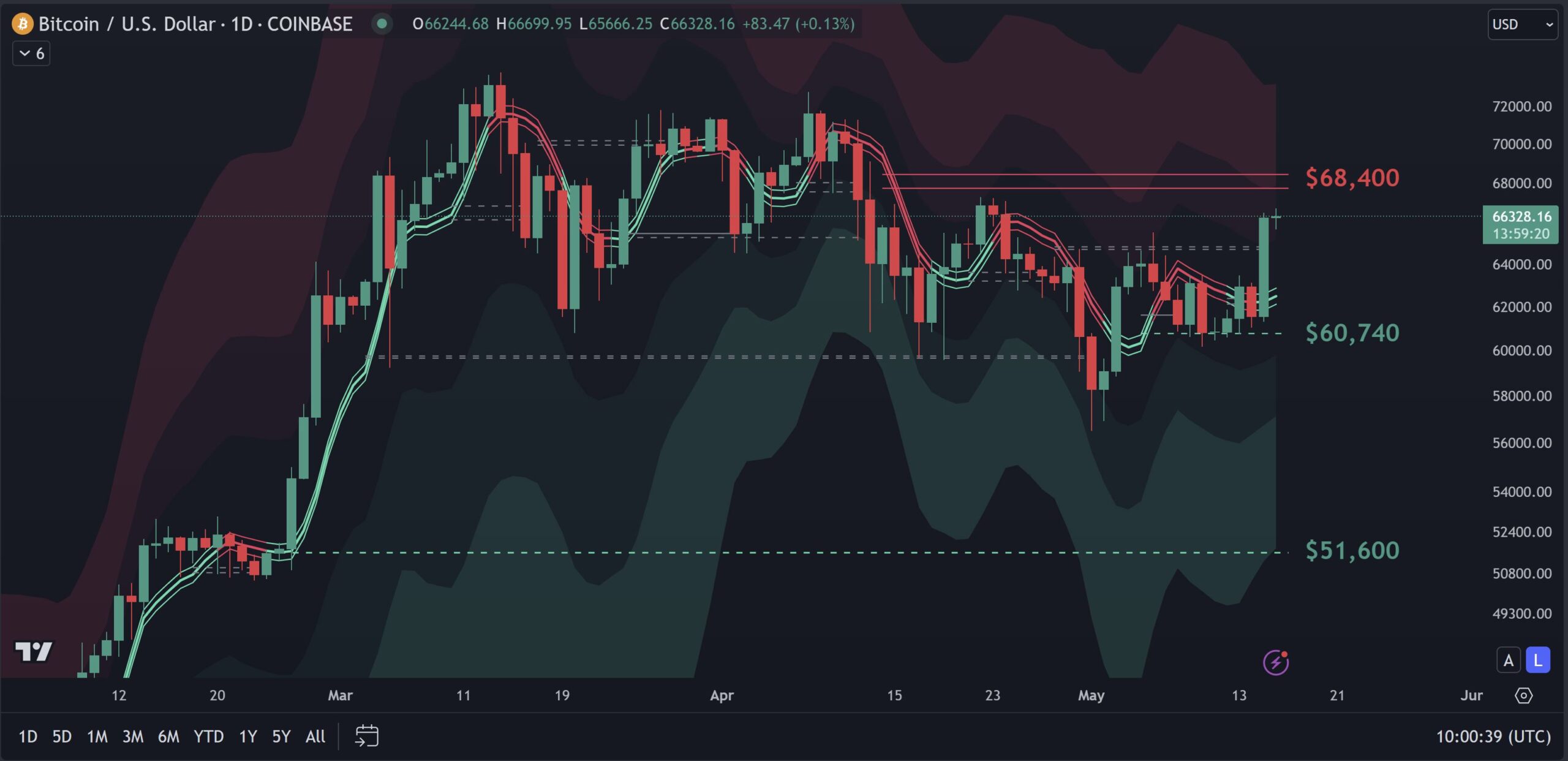 Bitcoin is up 6.52% in the past 24hrs at a current price of $66,330. So far this year Bitcoin is up +56.81%.