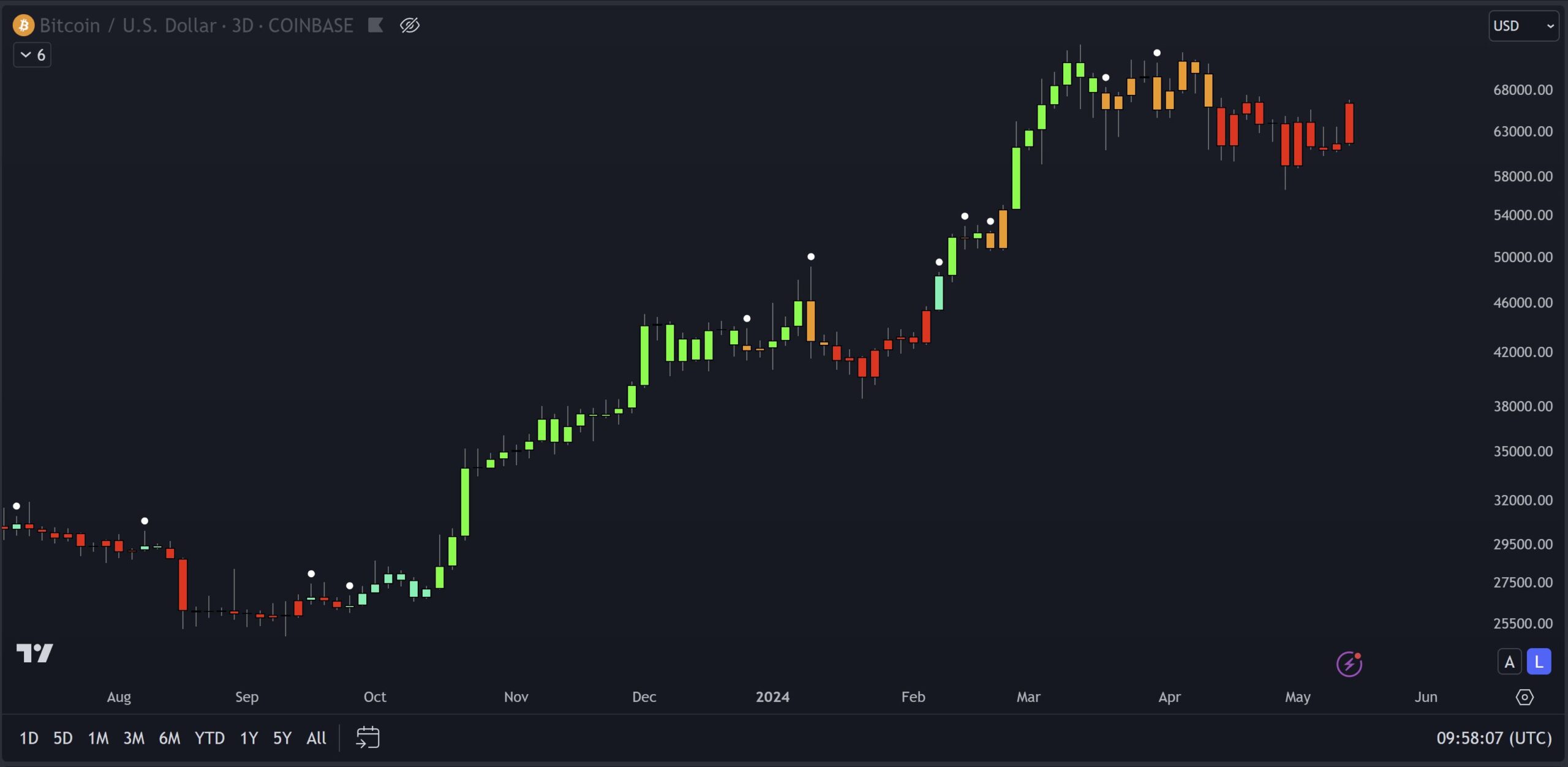 Bitcoin Predator Thermal Vision is bullish on medium term timeframes, though the 3-day remains red indicating that the longer-term trend remains bearish for now.