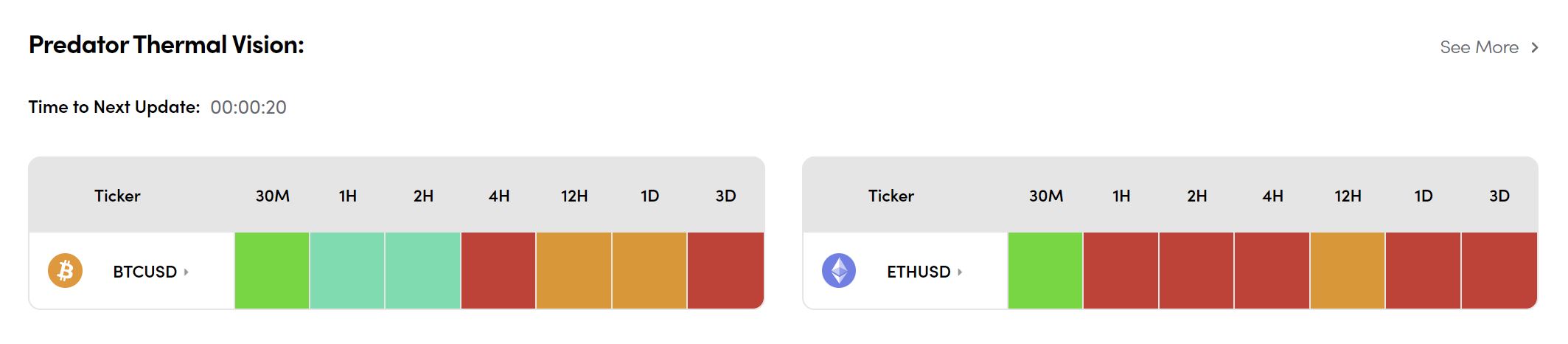 Bitcoin: Predator Thermal Vision remains red or amber on high timeframes 4H to 3D.