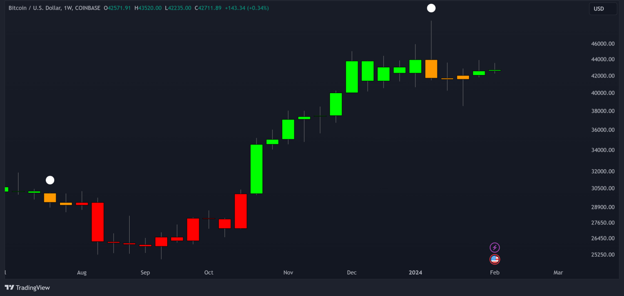 GM. Bitcoin price is ranging at $42,800 as the market remains uncertain about the direction of the next move. Predator remains red on the 3-day timeframe. In the news, Janet Yellen calls for more legislation against crypto risks.