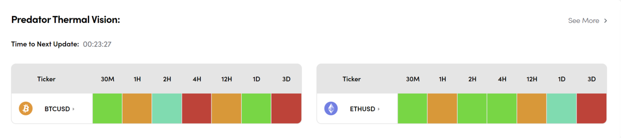 Bitcoin: Predator Thermal Vision is mixed across lower timeframes. It remains red on the 3-day timeframe.