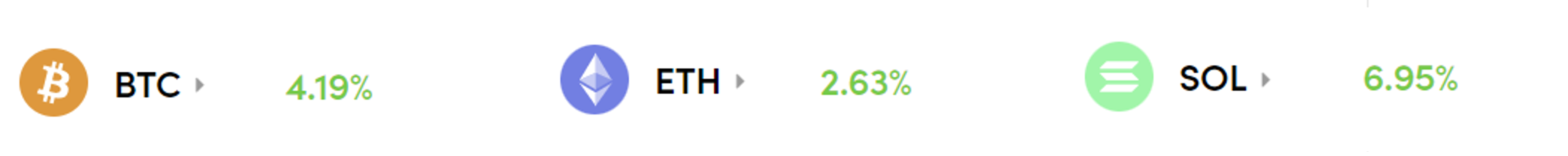Bitcoin is up 4.19% in the past 24hrs at a current price of $44,650. Ethereum is up +2.63% at $2,420.