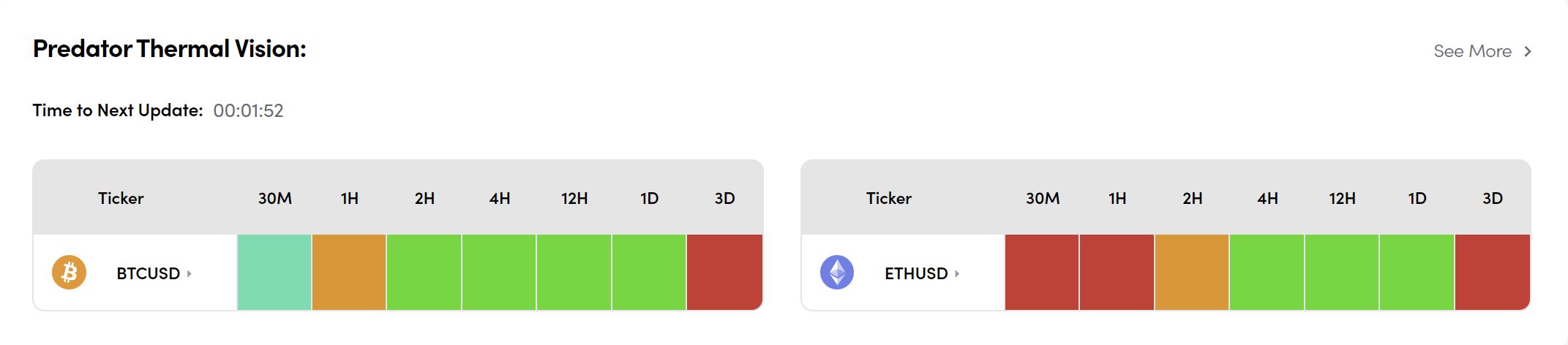 Bitcoin: Predator Thermal Vision is bullish across nearly all lower timeframes, but remains red on the 3-day.