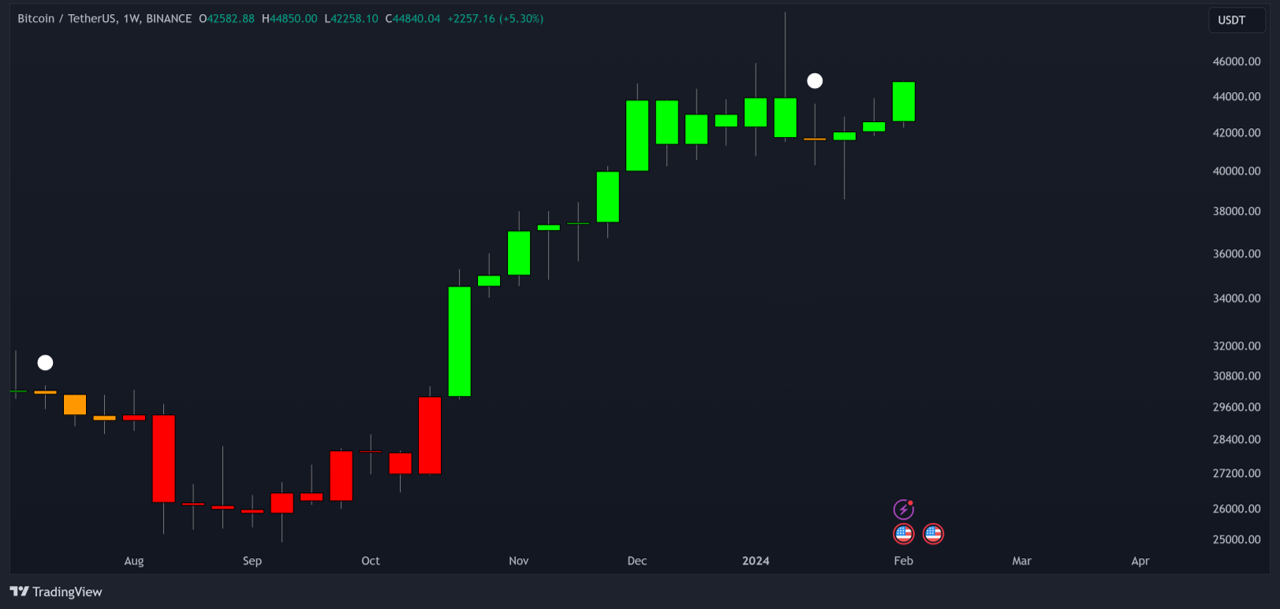 GM. Bitcoin price is trending up for the 4th day in a row but is now approaching Sniper resistance. $BTC current price is $44,650. In the news, Michael Saylor is now calling Microstrategy a ‘Bitcoin development company’.